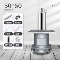 柴火灶农村家用无烟室内取暖炉子烧木柴户外大铁地锅台移动炉具 50圆底烤箱炉+水箱4米烟管配件