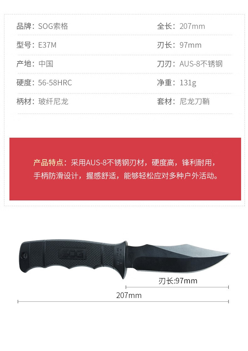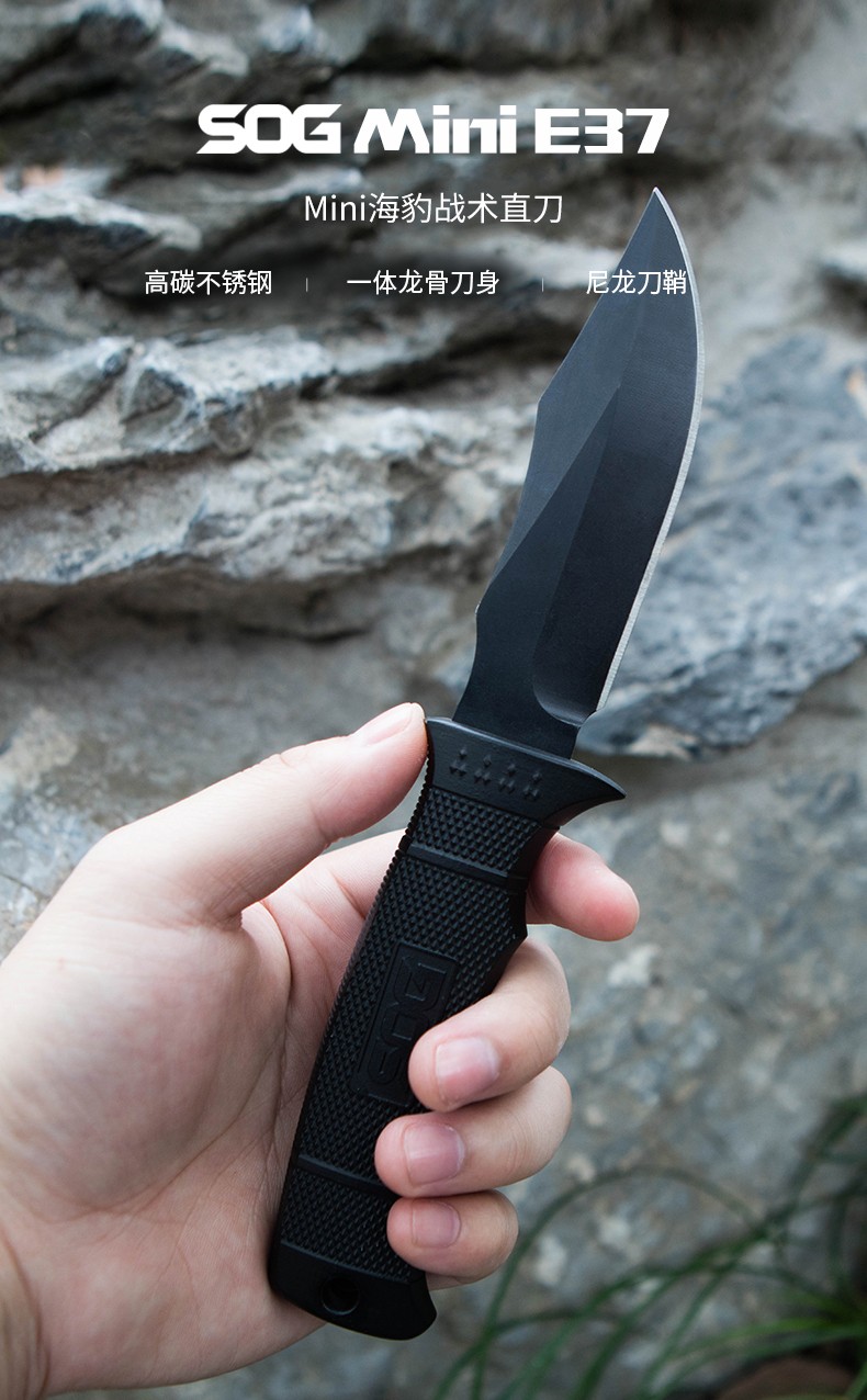 SOG索格户外装备直刀EDC高硬度MINI海豹小直刀露营野营多用随身工具 MINI海豹E37M直刀