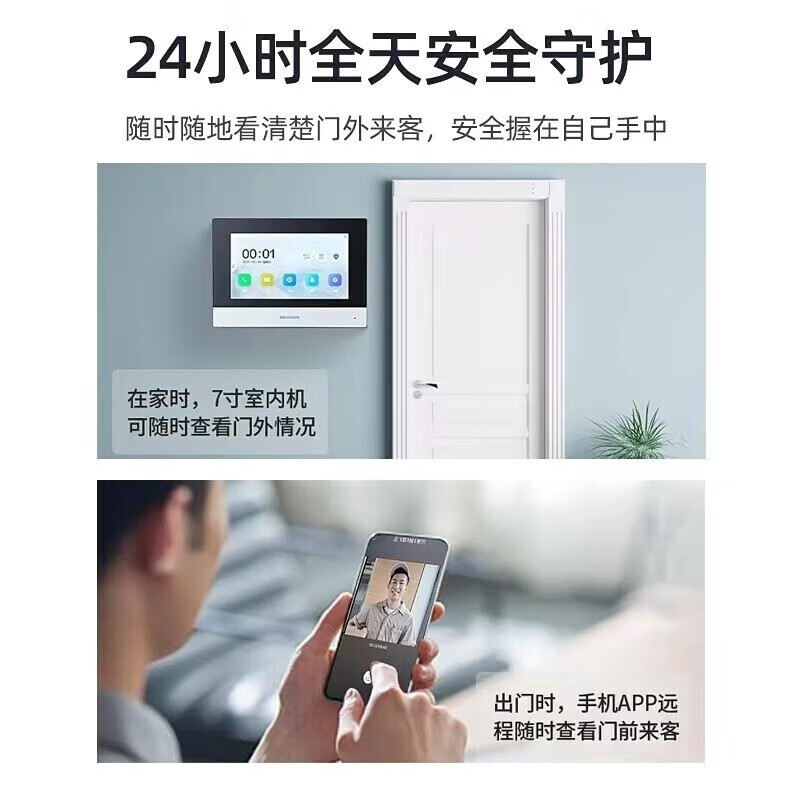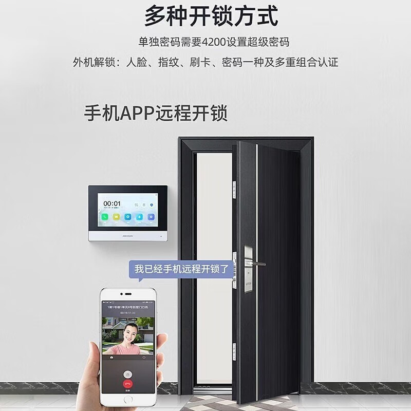 海康威视别墅对讲可视对讲门禁系统无线电子门铃医院住院部一键呼叫视频通话控制开门楼宇单元门禁KVJ801 一拖三套装 室内机(有线款)电源供电 室内屏幕可对讲开锁
