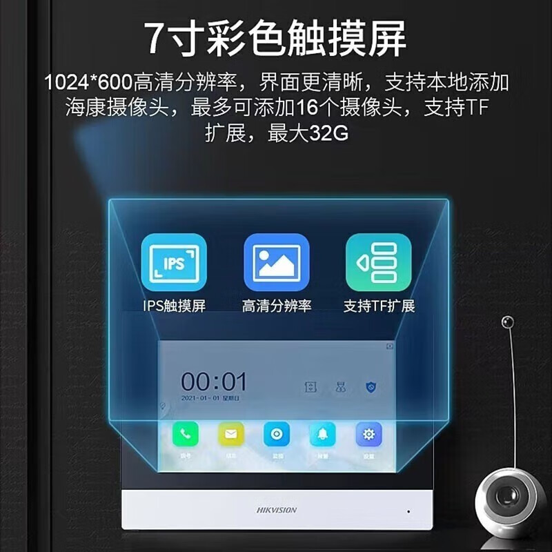 海康威视7英寸全数字室内机室内机与单元门口机对讲支持呼梯到对应楼层别墅小区楼宇DS-KHJ603/320-A随机发 7寸全数字室内机DKHJ603/320-A随机发 官方标配