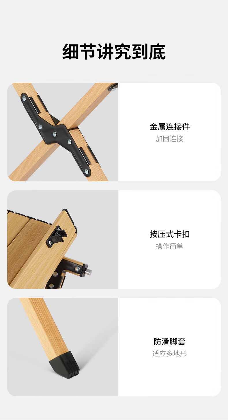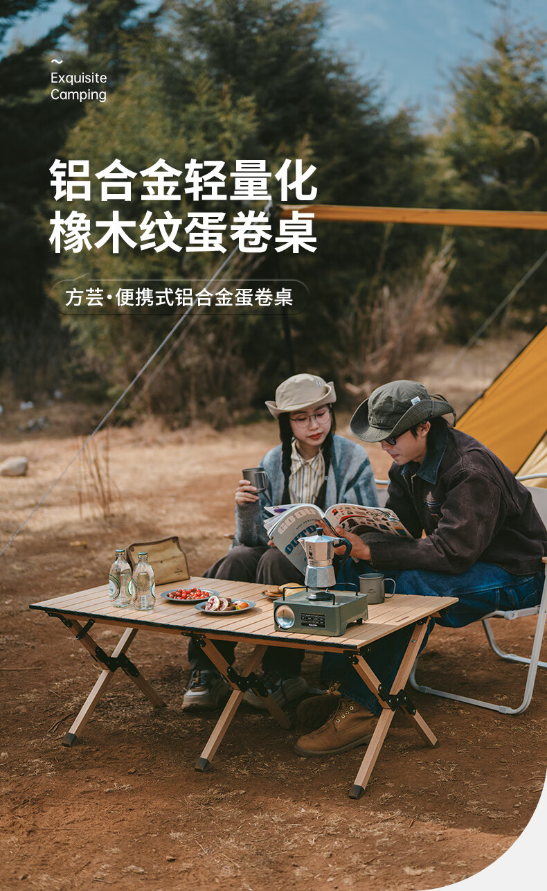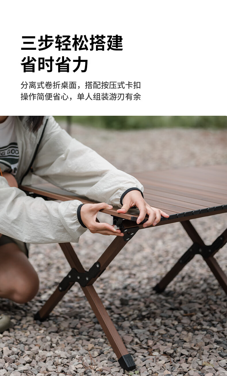 挪客Naturehike方芸SE铝合金蛋卷桌户外露营野营便携式轻量化折叠桌子 橡木色/大号