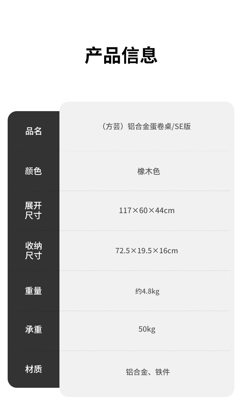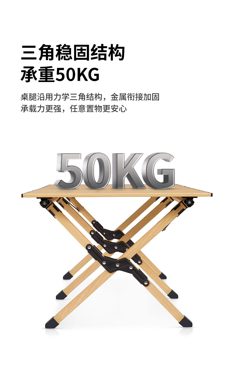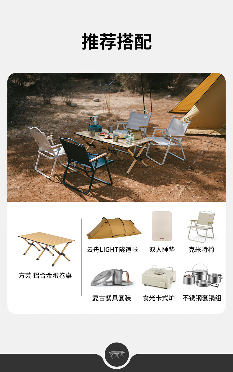 挪客Naturehike方芸SE铝合金蛋卷桌户外露营野营便携式轻量化折叠桌子 橡木色/大号