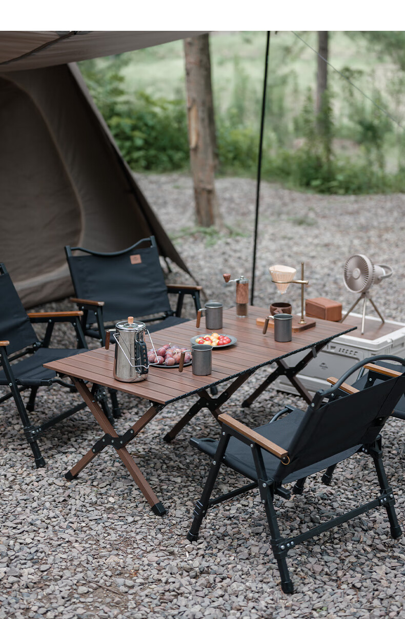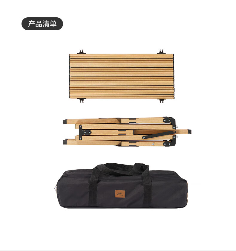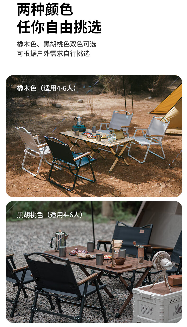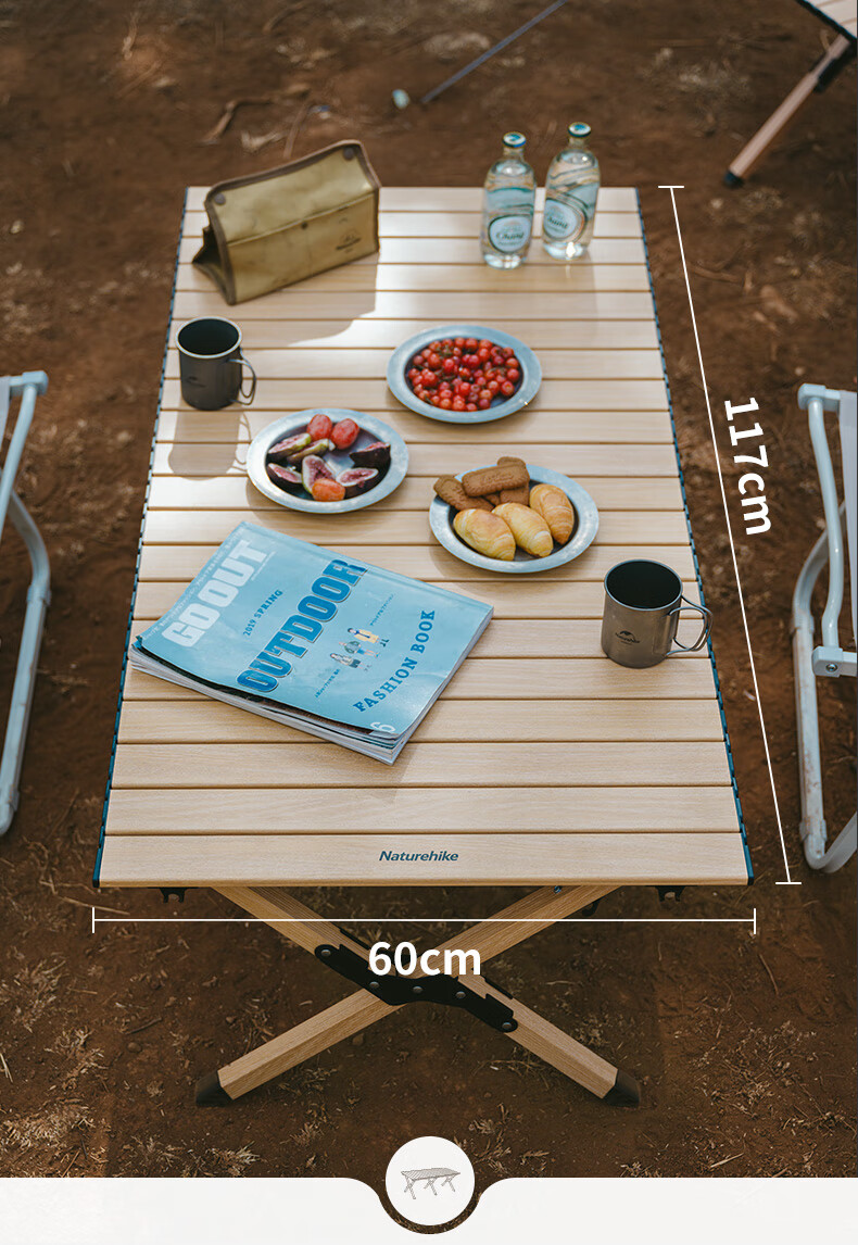 Naturehike挪客铝合金蛋卷桌户外折叠桌子露营桌野餐便携桌椅装备全套 橡木色/大号【赠收纳袋】