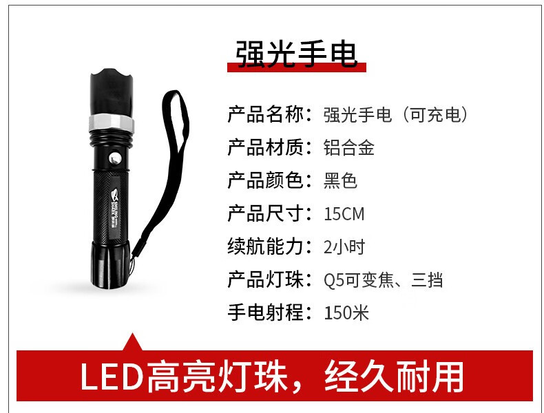 龙琪(LONGQI) 龙琪 安保防暴器材保安器材学校园反恐装备套装 强光手电