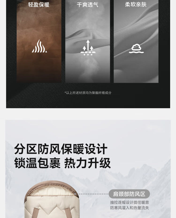 黑冰P棉睡袋成人户外露营大人加厚防寒被子可拼接单人信封式FT100 FT200米色拼卡其