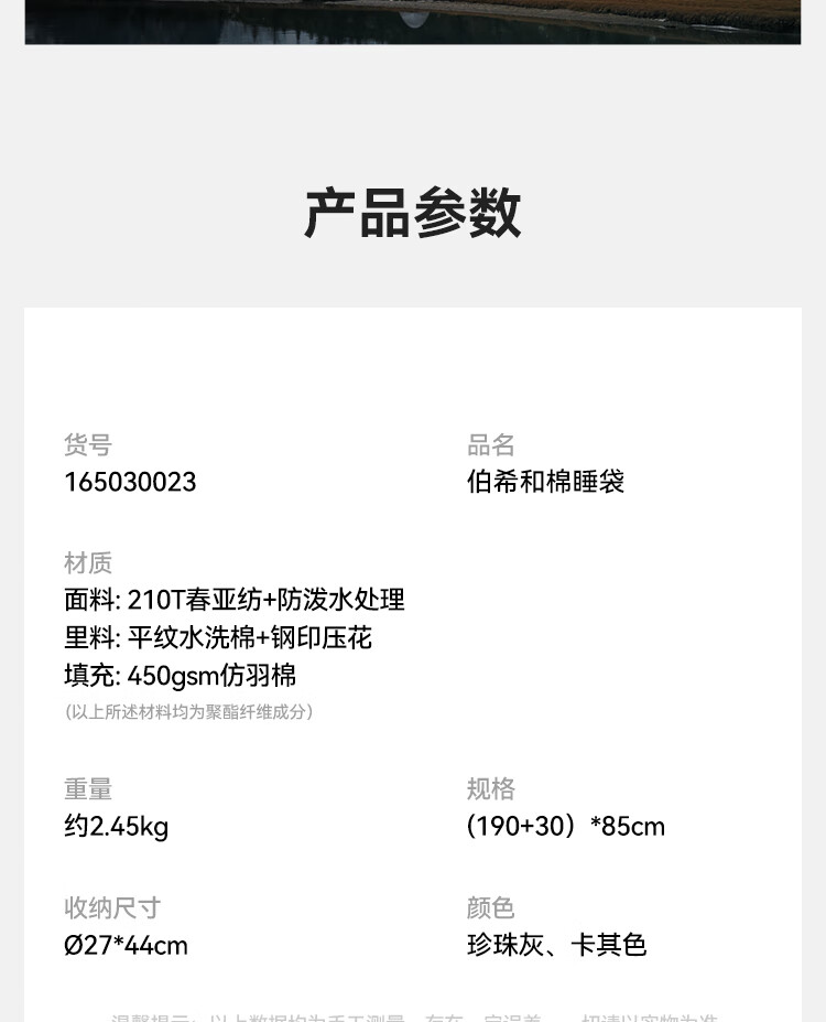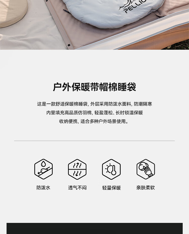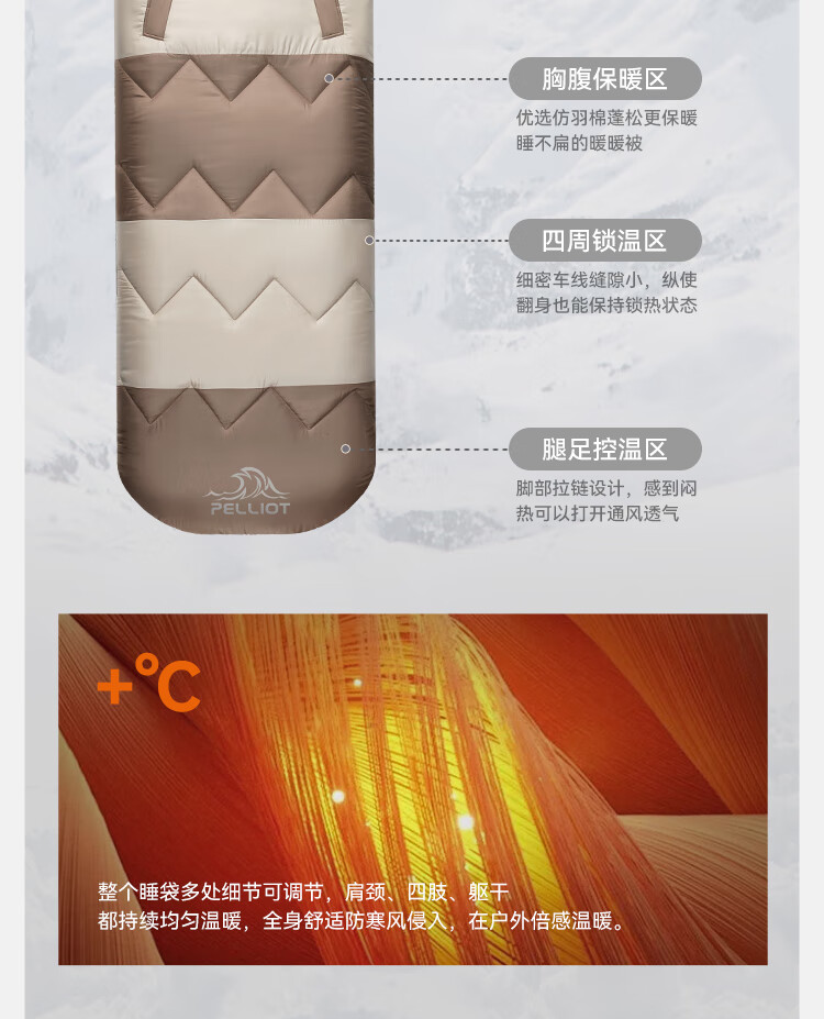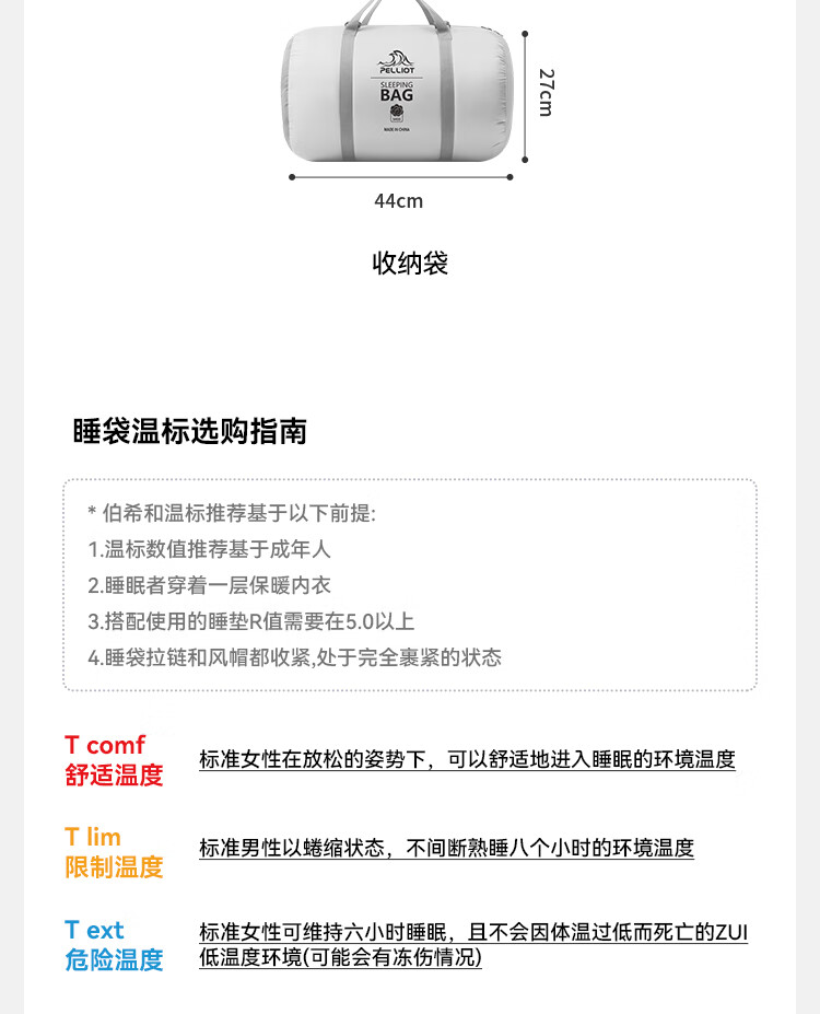 伯希和睡袋户外露营羽绒棉加厚防寒保暖大人酒店隔脏HIKER HIKER系列 珠灰