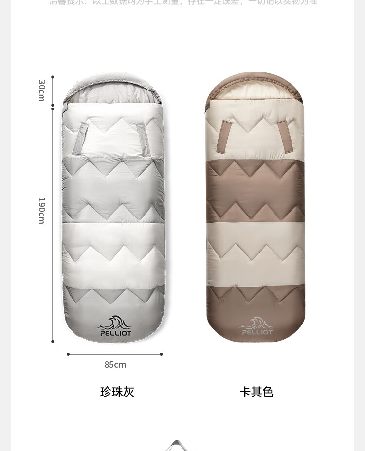 伯希和(Pelliot)HIKER系列睡袋户外露营羽绒棉加厚防寒酒店隔脏 【秋冬款】珍珠灰2.45kg 均码