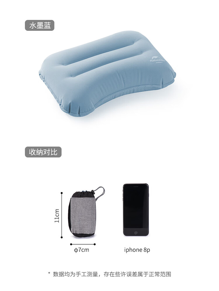 NatureHike挪客TPU植绒舒适充气枕头 户外便携旅行枕露营枕 便携午休睡枕 水墨蓝