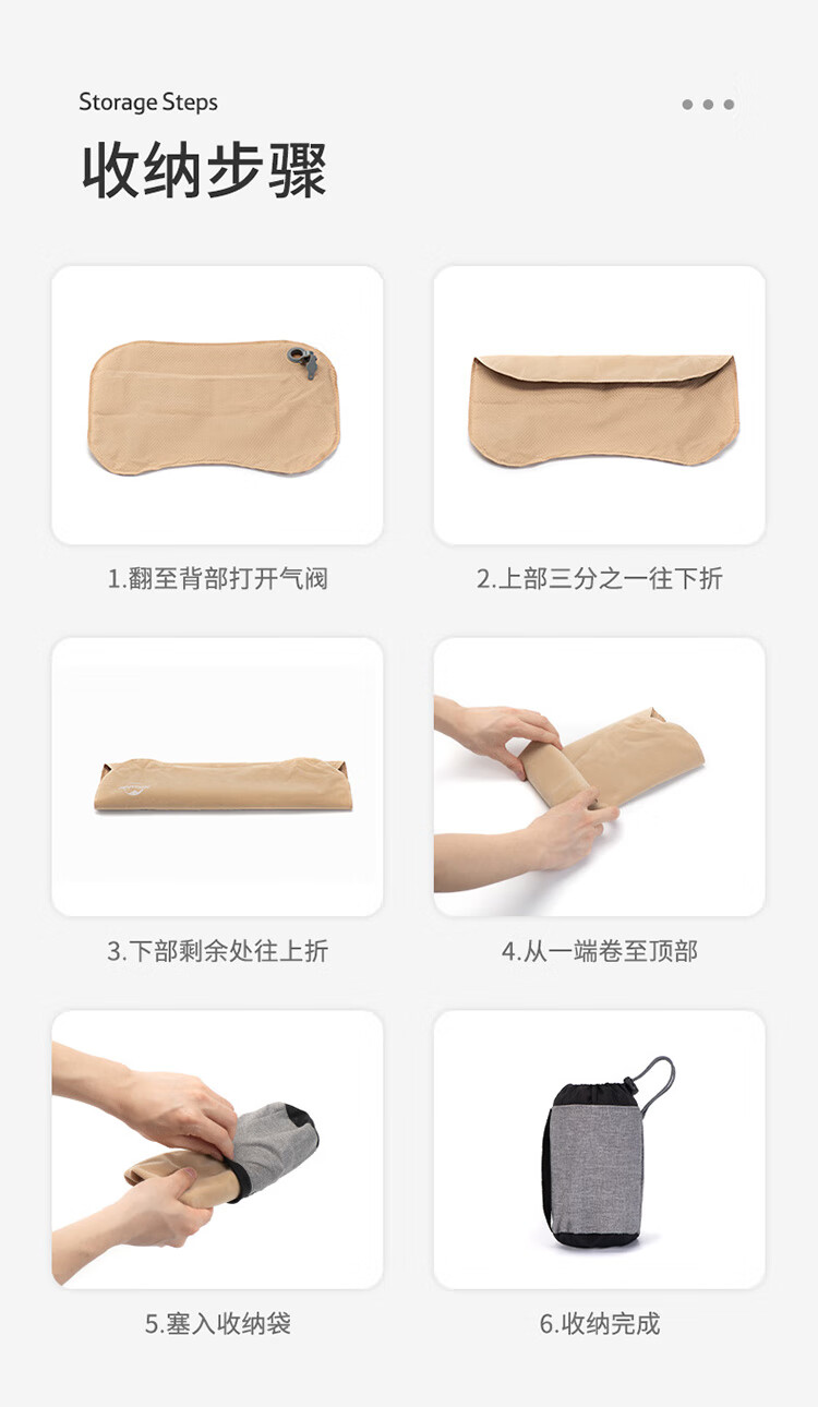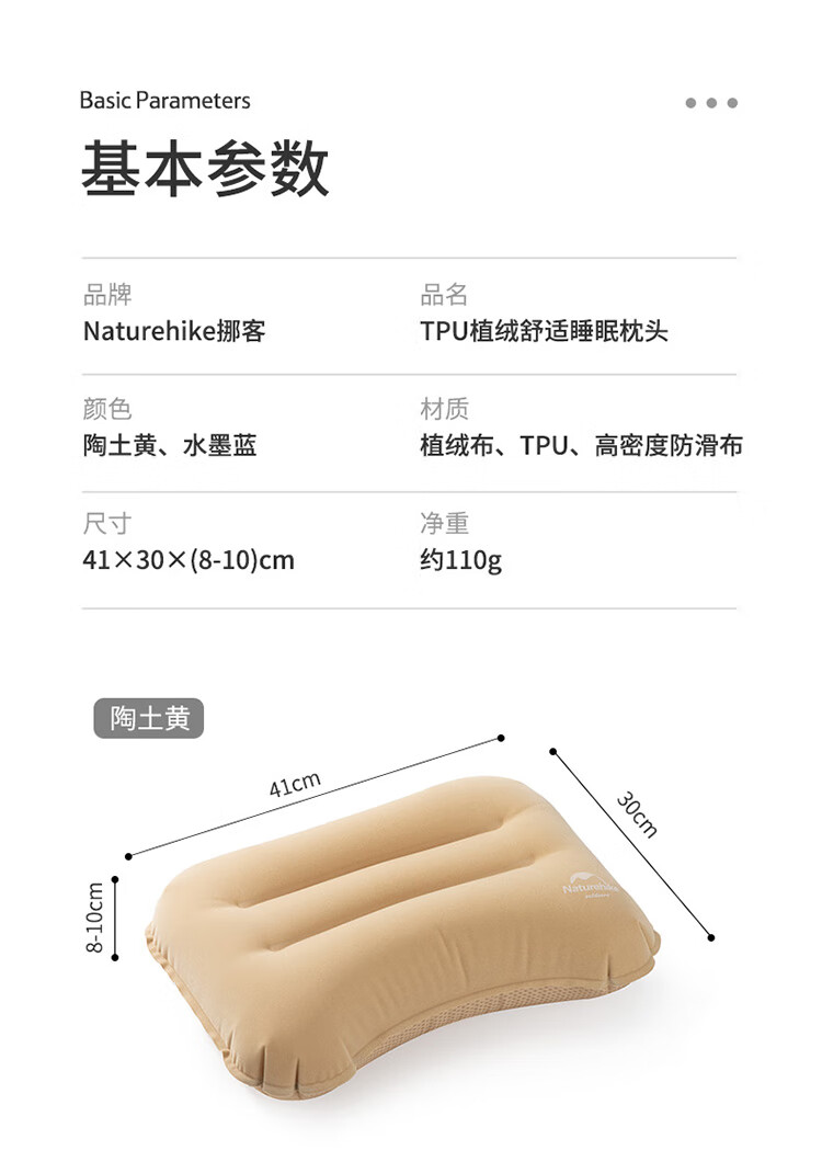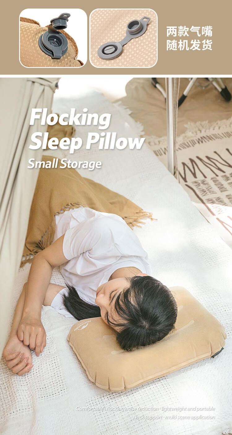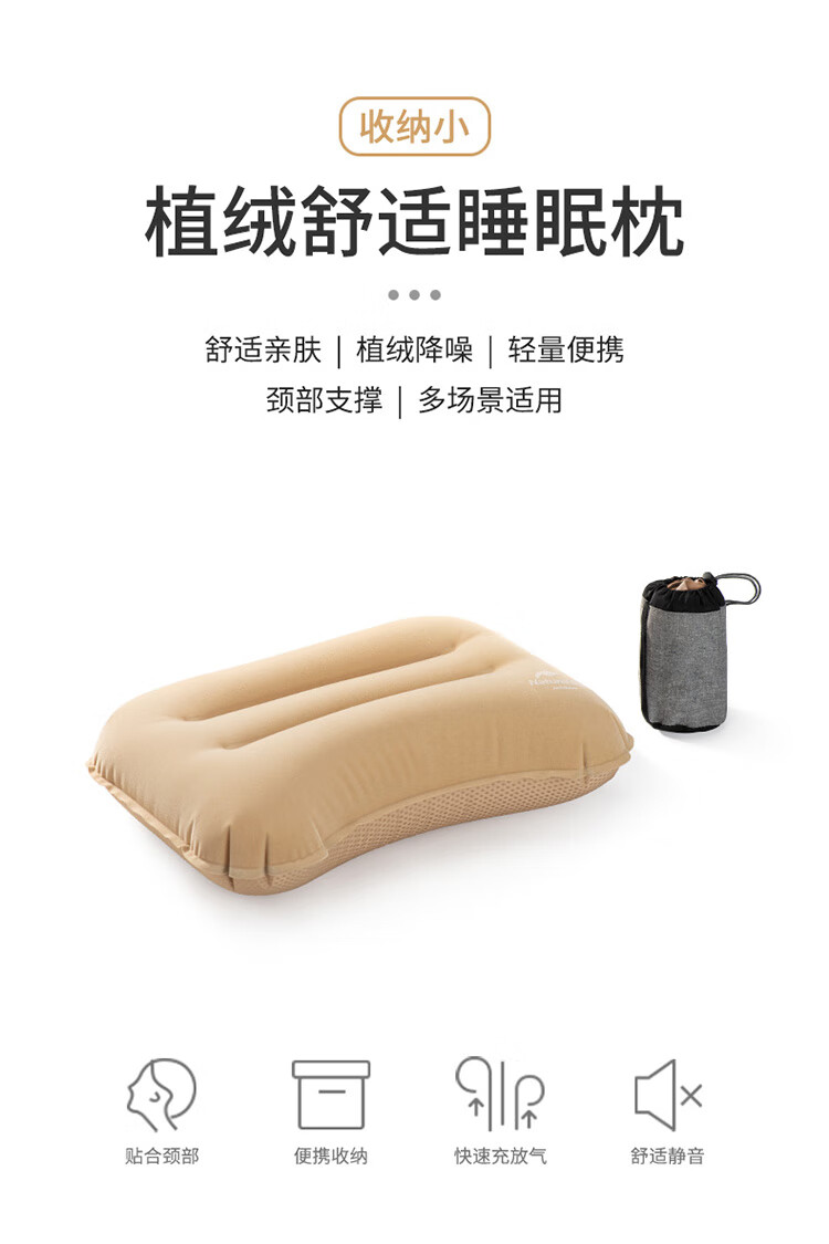 包装精美,携带方便,植绒面料,比较亲肤,高度适中,枕感舒适,充气可以人工嘴吹,也可用帐篷充气泵,很方便,赶上双十一购买,性价比高。
