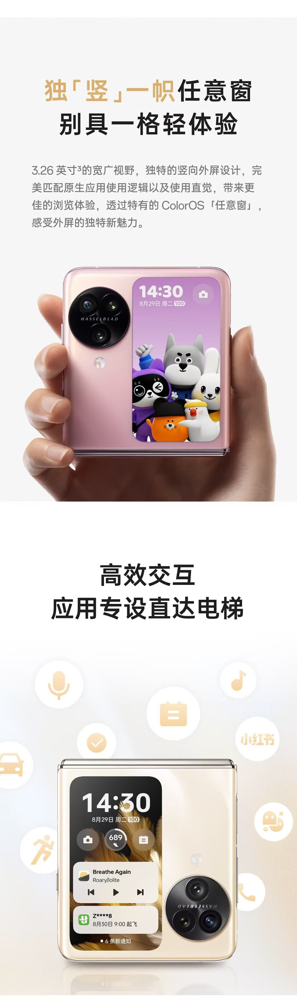 OPPO Find N3 Flip 分期免息白条可选120Hz镜面屏 5G 小折叠屏 薄雾玫瑰 12GB+256GB
