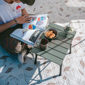 Naturehike挪客山见便携式折叠桌户外露营徒步登山铝合金手提式小蛋卷桌装备 松霜绿/S