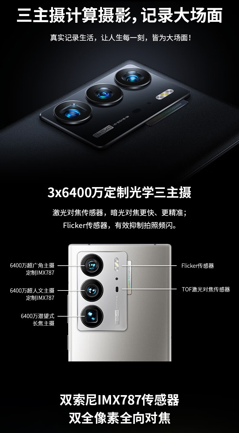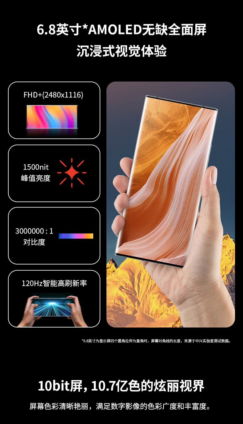 中兴天机40pro ZTE/中兴 Axon40 Ultra A41骁龙8系屏下摄像5G手机 中兴Axon40pro晶雾蓝12+512 512GB
