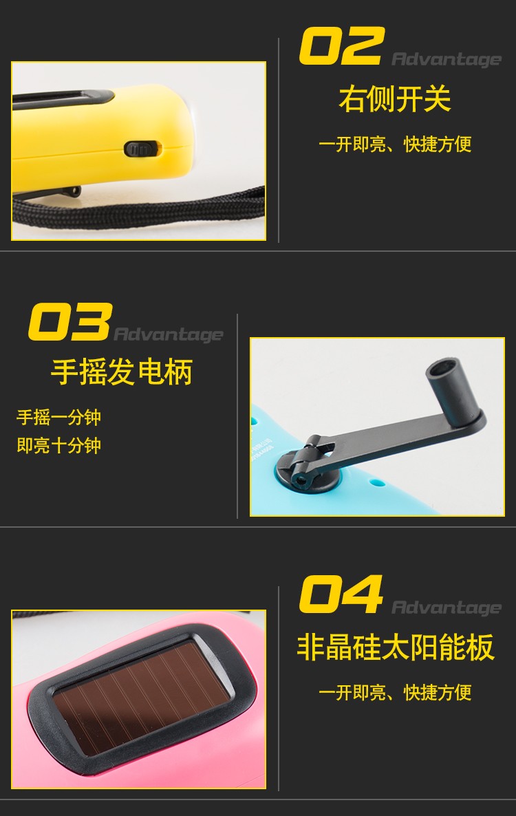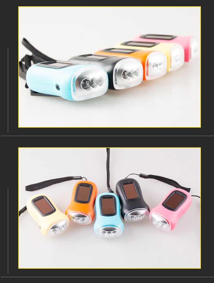新术LED手电筒 手摇发电太阳能充电强光迷你便捷式家用户外应急节能灯 手摇手电筒颜色随机