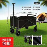 户外露营推车买菜摆摊购物拉杆野营野餐便携式折叠行李拖车露营车 黑色 大号越野轮
