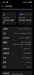 超值!2400到手的1+ace5至尊版12+512G,搭配天机6400+旗舰芯,内存管够,玩《原神》稳60帧,还有6700毫安超强续航,物流也很快,四川到福建只要2天。非常值得入手的游戏机!最后由于不是官方点发货(还需要进一步体验)