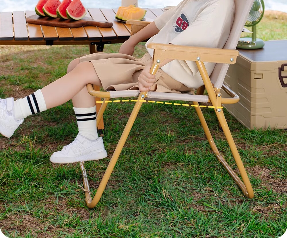 为了露营特意准备的椅子,天气刚刚好,适合在户外坐坐,带着孩子亲近大自然,免得一天到晚呆在家玩手机看电视。跟折叠桌搭配一套,家人满意,真的好好用呀,折叠椅很轻巧收纳起来也方便,主要是坐着很舒服,非常喜欢!!!值得购买!!