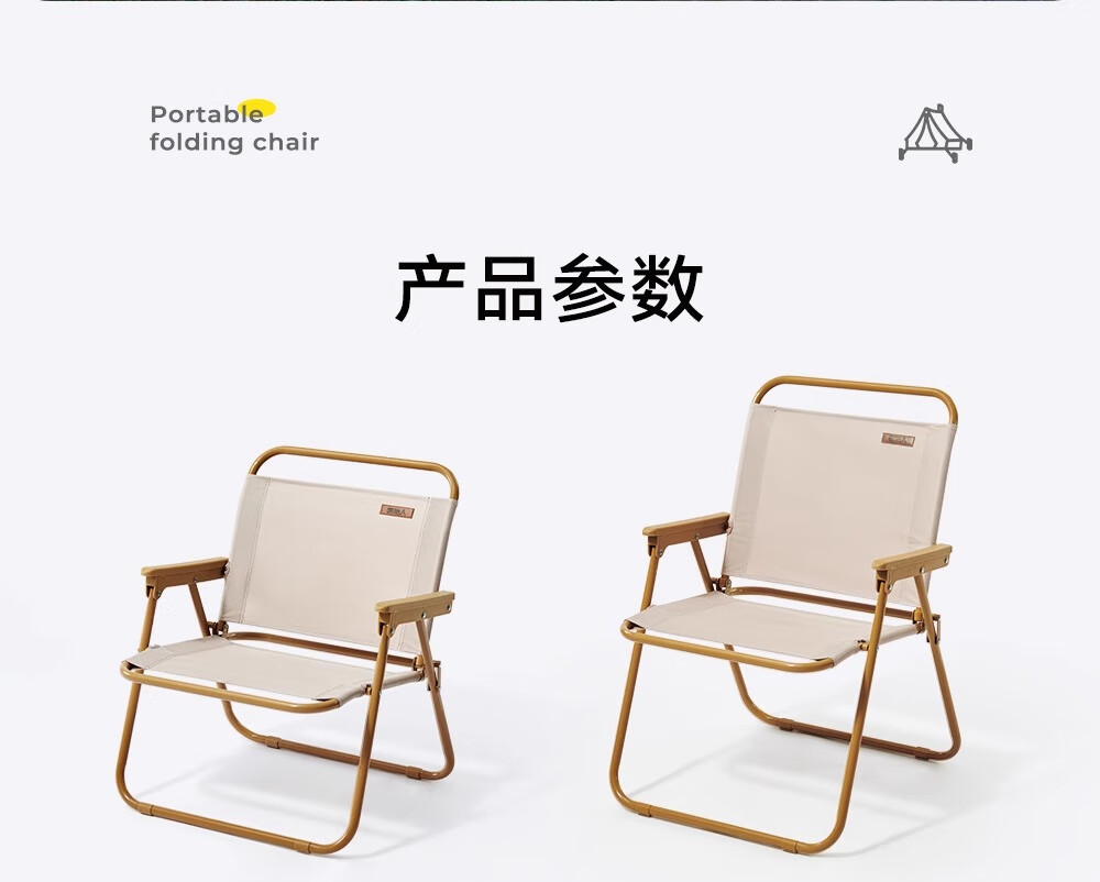 户外折叠桌椅折叠椅可折叠露营便携椅子野餐超轻米特钓鱼沙滩椅 【提手+易携】18mm米白榉木大号椅