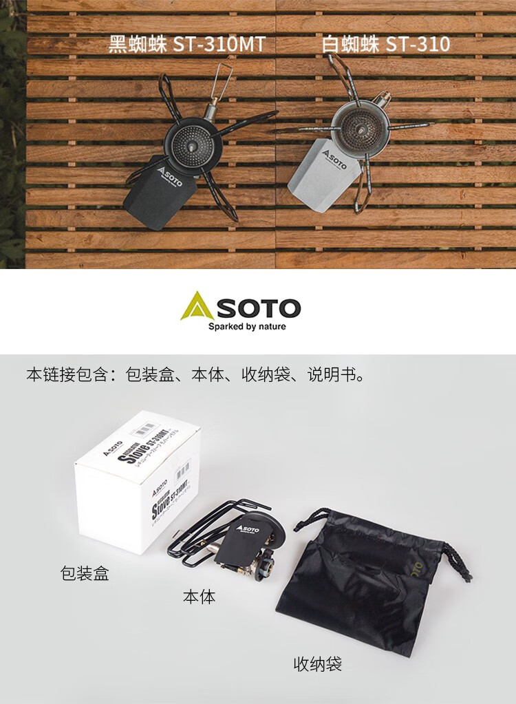 脉鲜ST-310SOTO户外露营SOTO340黑蜘蛛炉登山大火力高山轻巧携带 310蜘蛛炉