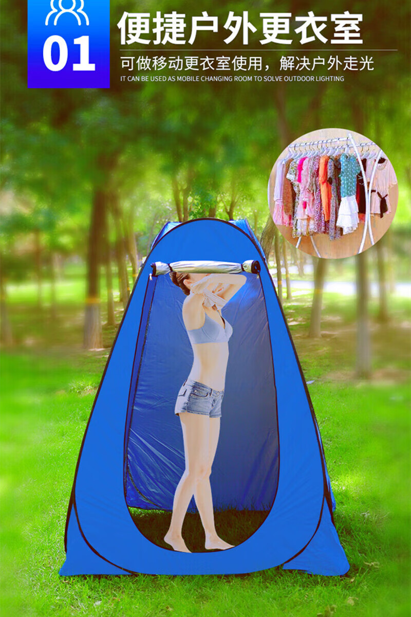 户外厕所帐篷洗澡浴罩浴帐临时野营露营移动卫生间换衣更衣 1点2米普通薄款无窗无涂银