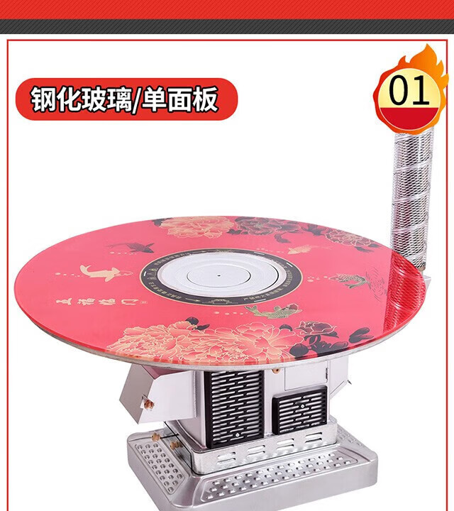 璞灶旺回风炉农村家用取暖柴火炉煤火炉柴煤两用炉多功能烤火桌节能取暖 0.8米钢化玻璃桌面 柴煤两用炉