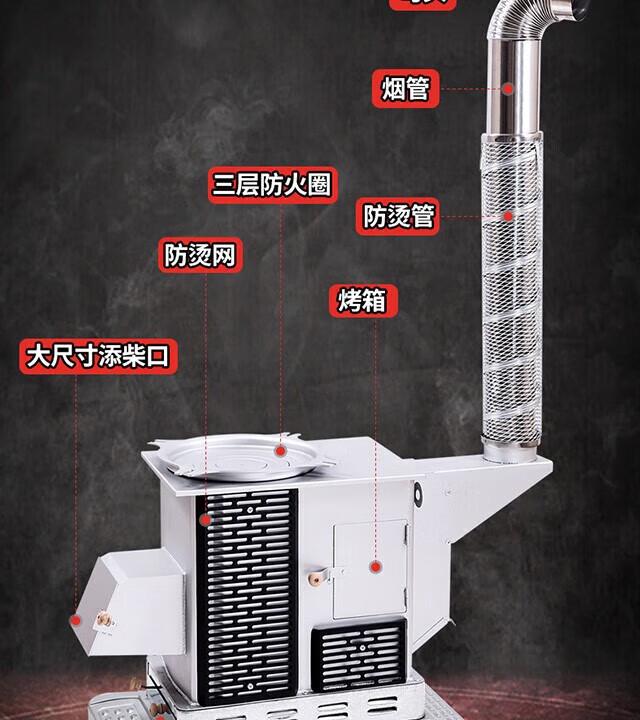 好厨官 (送货上门)冬季烤火炉柴火灶不锈钢取暖炉农村烤火炉家用取暖炉柴煤两用无烟柴火灶新款回风炉烧柴 1.2米不锈钢单层【柴火炉】 日常款