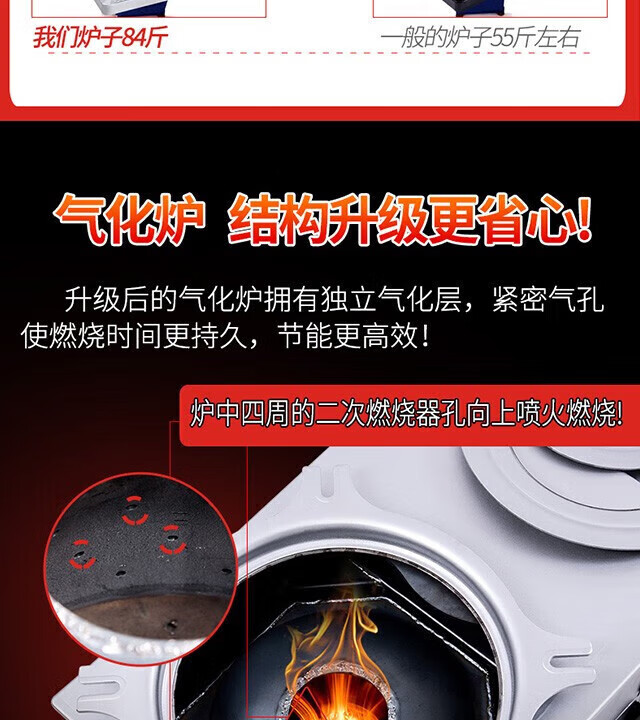 都格(Duge)【送货上门】气化炉家用室内烤火炉柴煤两用节能无烟柴火炉灶农村 单炉体(不含任何配件)