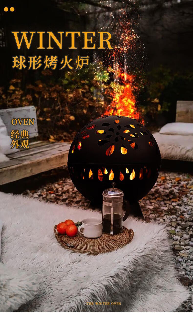 球形烤火炉,颜值高,用料材质也很好,份量重,很稳当