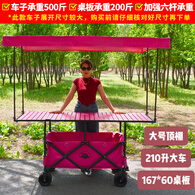 大号露营车摆摊车夜市小推车升降桌柠檬茶餐车营地野餐车聚拢折叠 粉色车+167*60粉桌板+(粉)超大棚