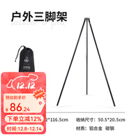 原始人野营吊锅户外篝火三脚架野炊锅便携露营焚火架炊具挂三角架 黑色加粗三脚架(配收纳袋)