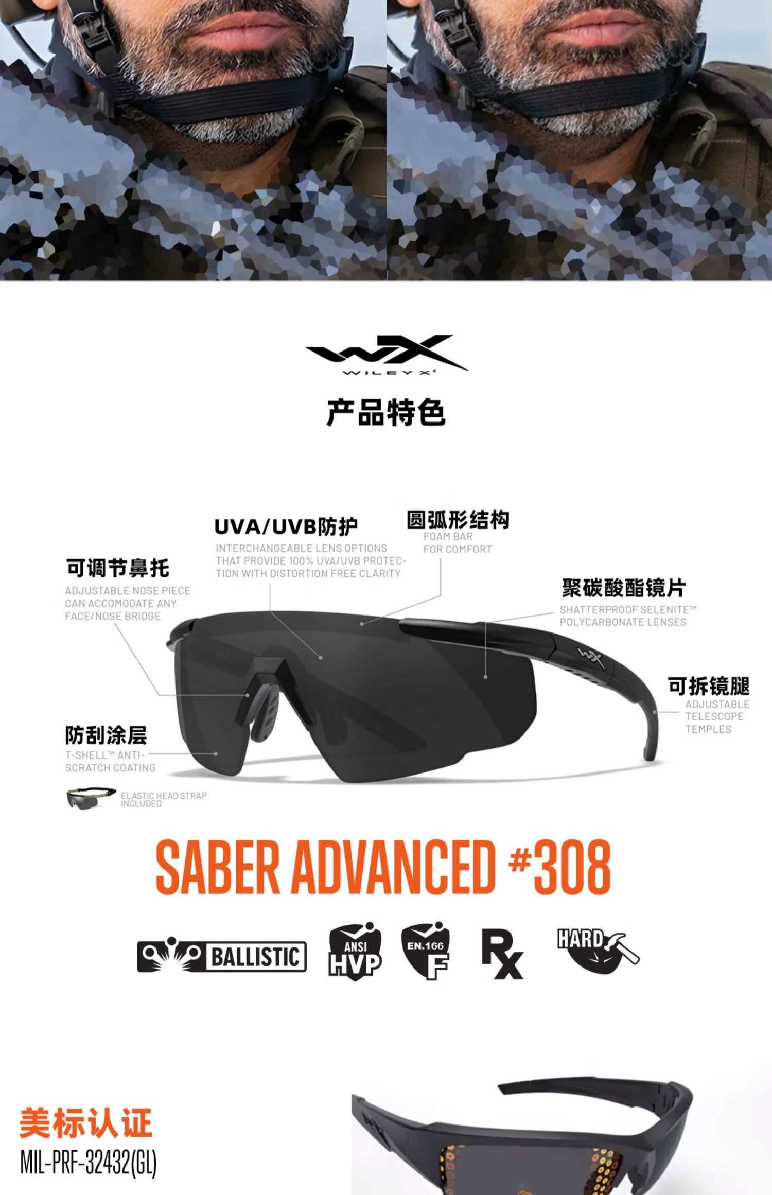 WILEY X美国战术眼镜三色片装 WileyX战术护目镜户外近视射击眼镜308 护目镜套装(三色镜片)