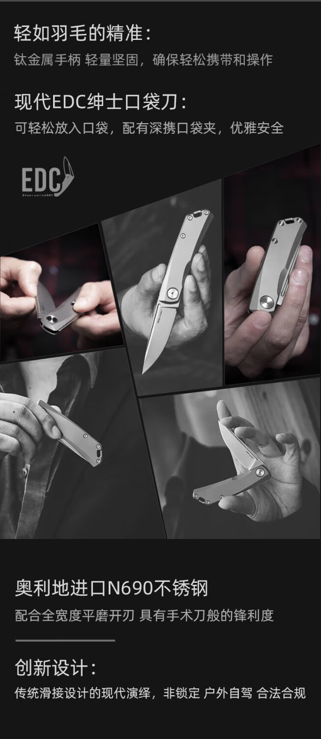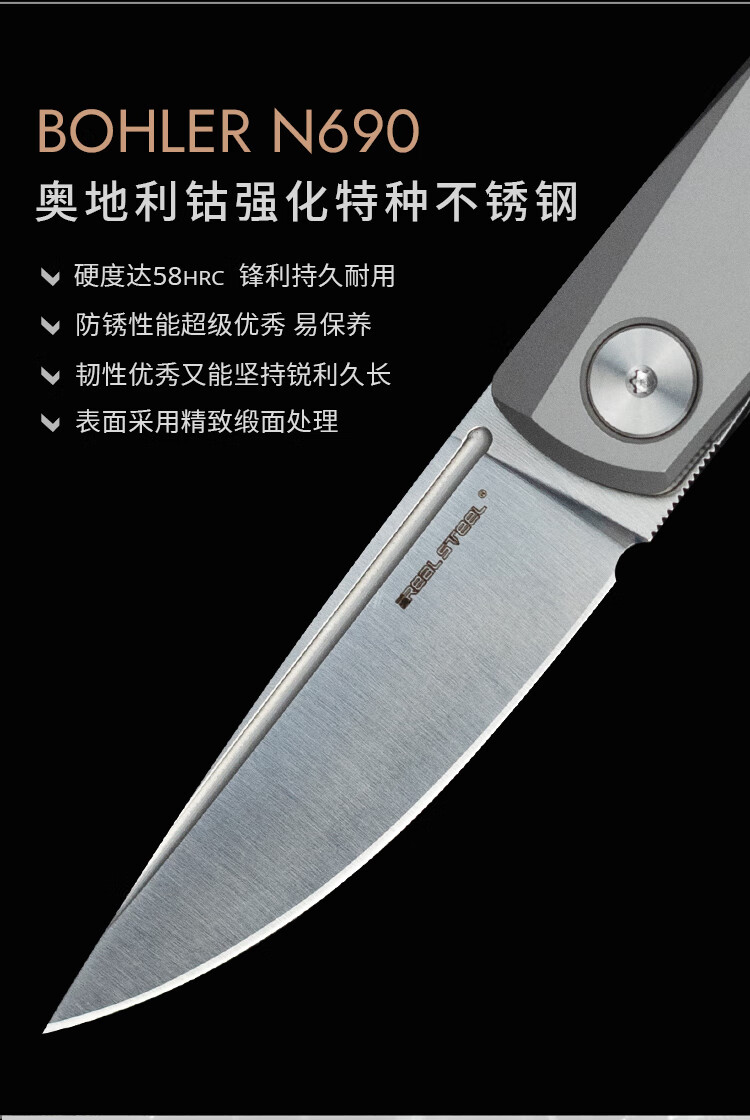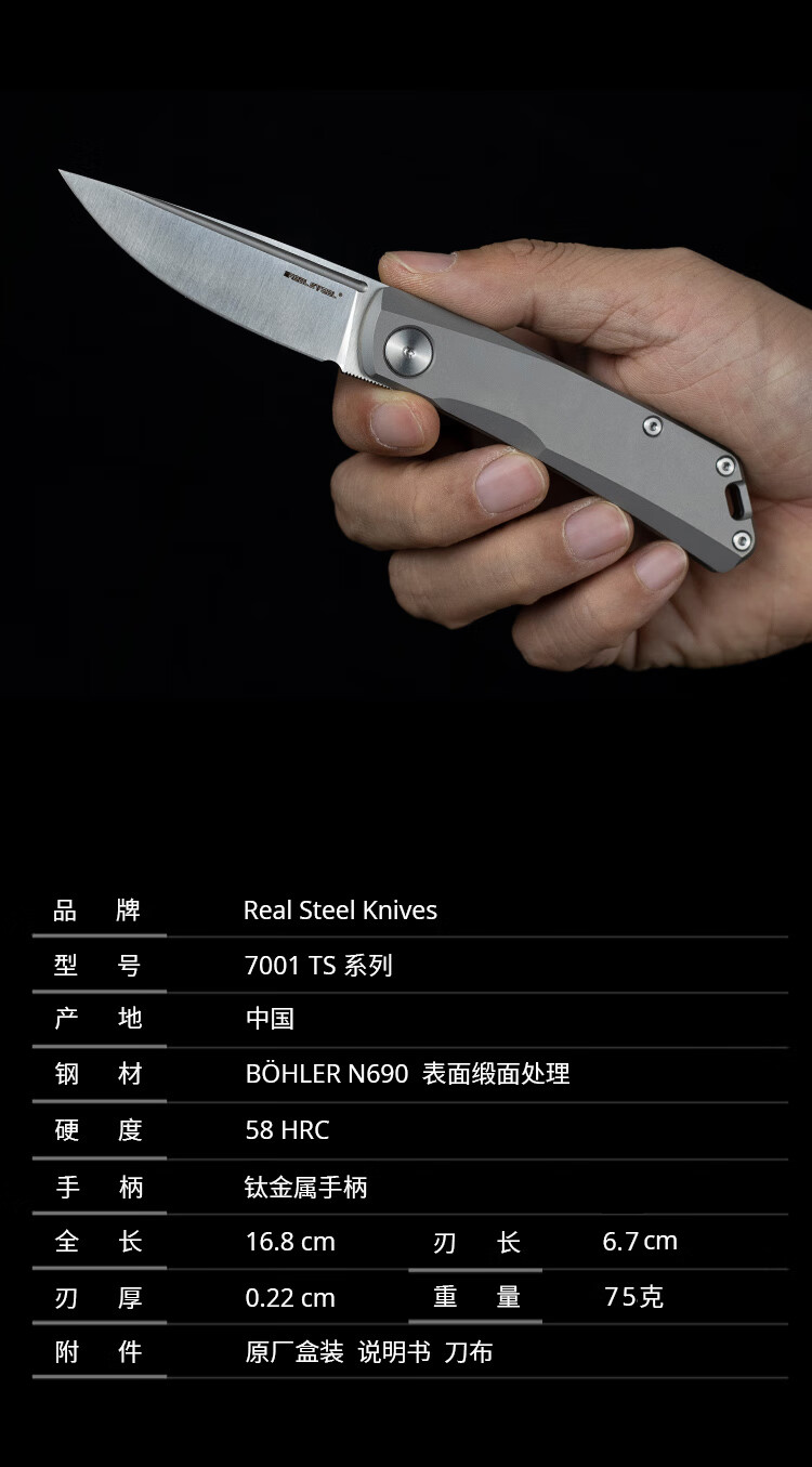 锐狮帝Real Steel Stella Titan 辰星钛宸 S35VN粉末钢 TC4钛柄 小折刀 砂光刃+石洗钛手柄