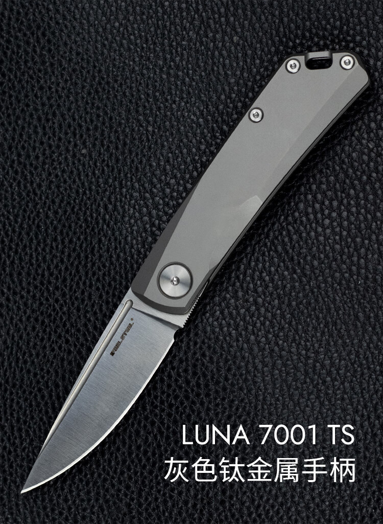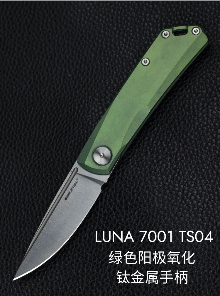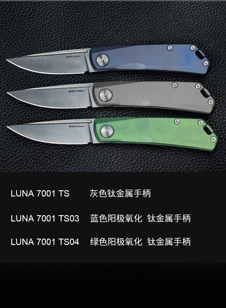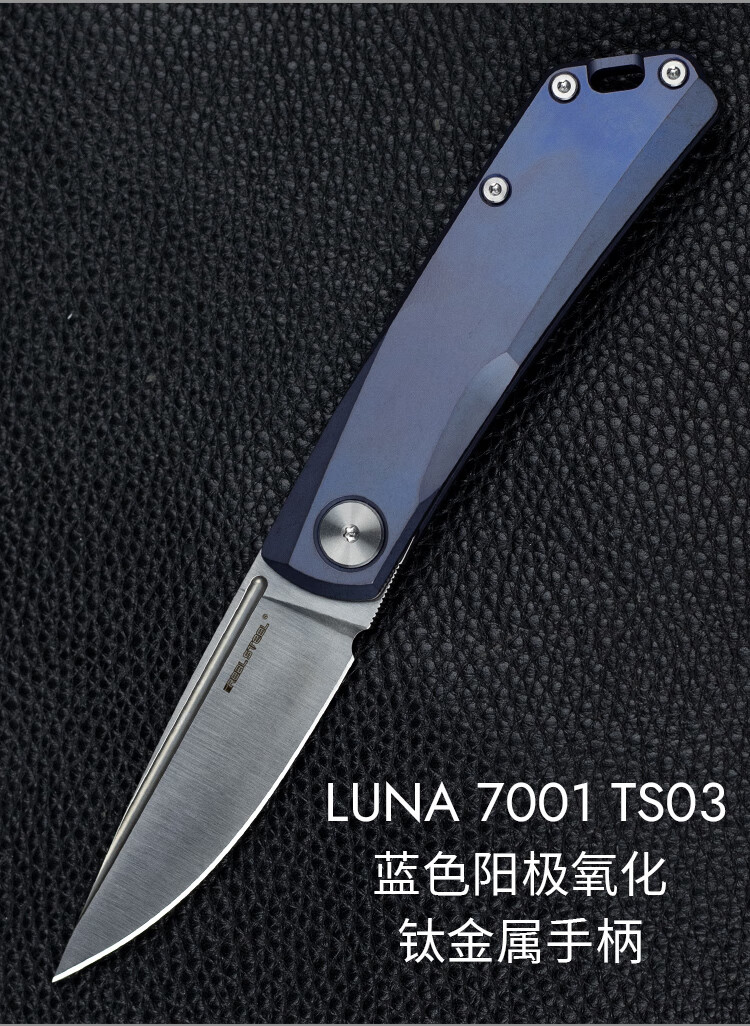 锐狮帝REALSTEEL锐狮帝N690不锈钢Luna钛柄户外轻量EDC口袋刀便携折叠刀 7001 TS-03蓝色钛金属手柄