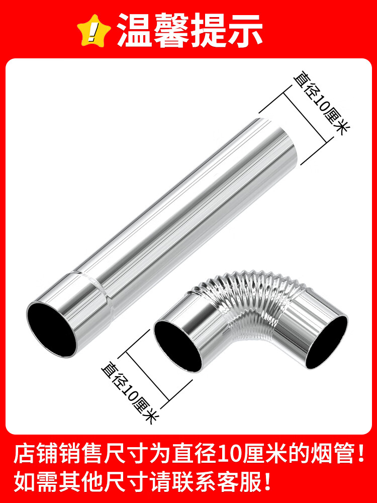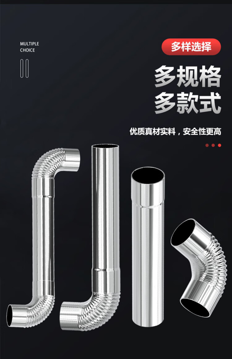 加厚不锈钢烟管柴火灶回风炉烟囱管弯头烟筒管烤火炉取暖炉排烟管 【特厚】50厘米不锈钢烟囱+2个弯头