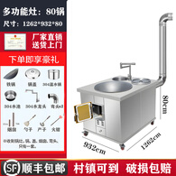 农村家用柴火灶新款烧木柴户外304不锈钢无烟柴火灶加厚水池温水 单灶80CM+下水池+温水锅