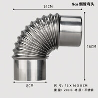 三峰出三峰柴火炉配件烟囱弯管防烫网收纳袋围栏固定环防雨帽边框水箱 8cm 90度烟囱弯管