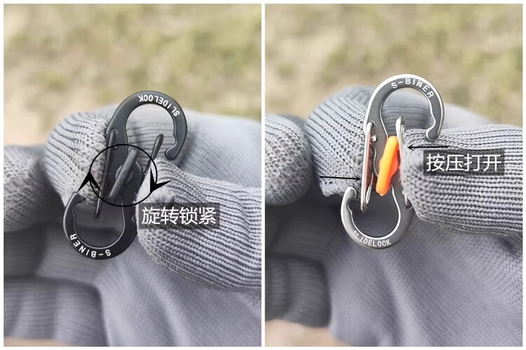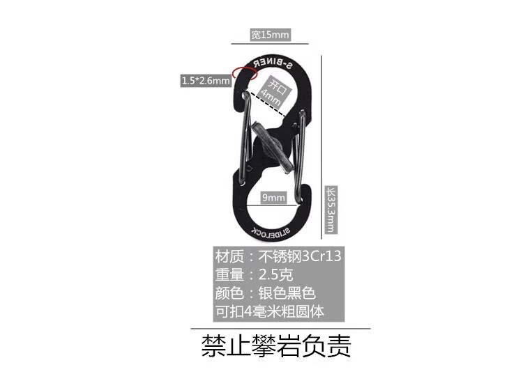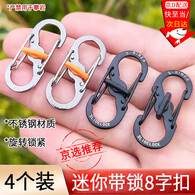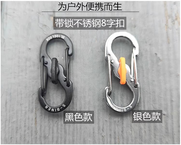 何健弓带锁8字扣不锈钢快挂扣户外背包登山扣拉锁包链扣防盗S形扣钥匙扣 不锈钢带锁8字扣【黑色+银色】4个