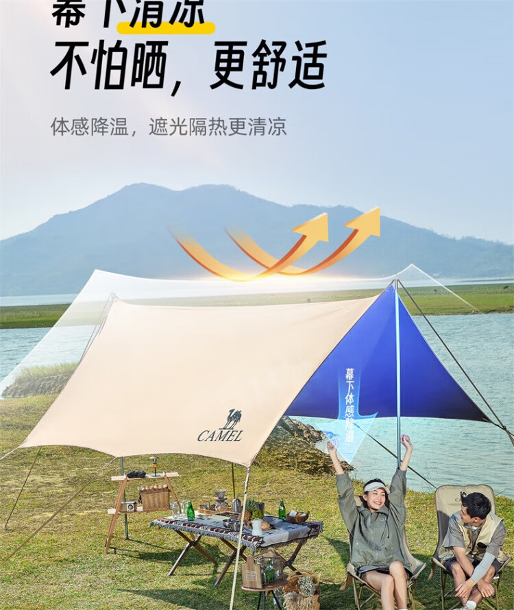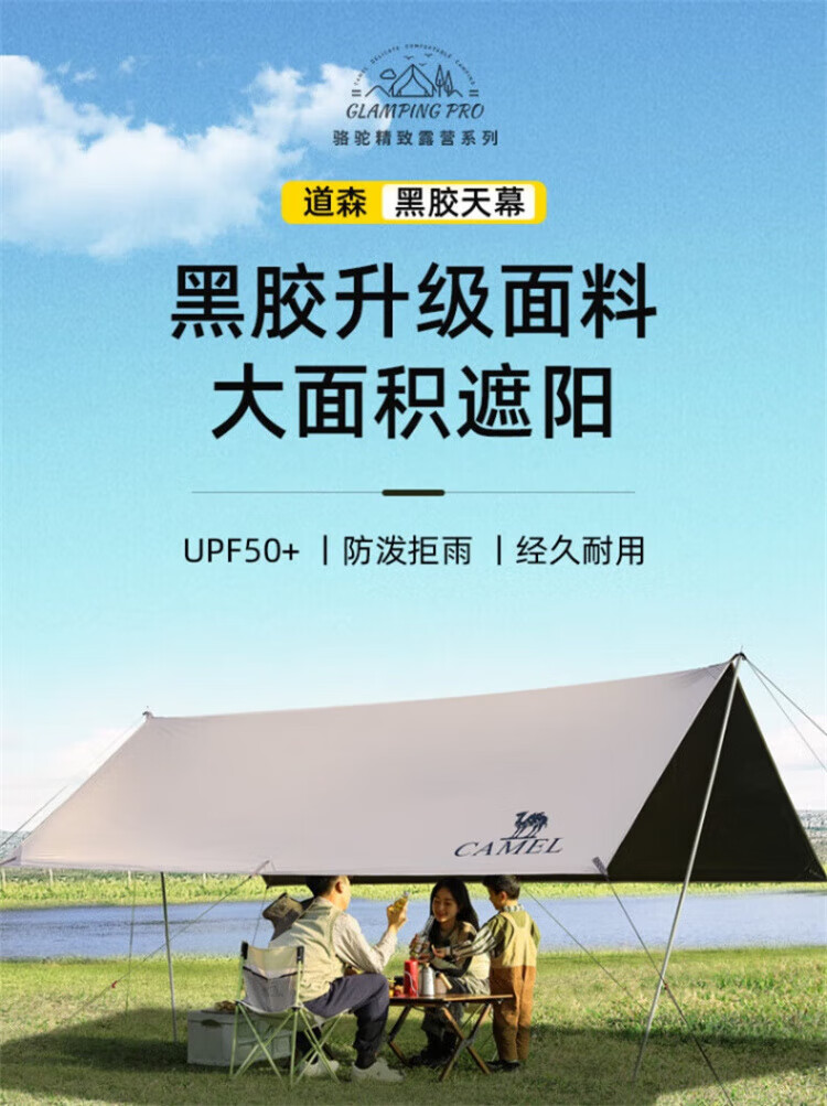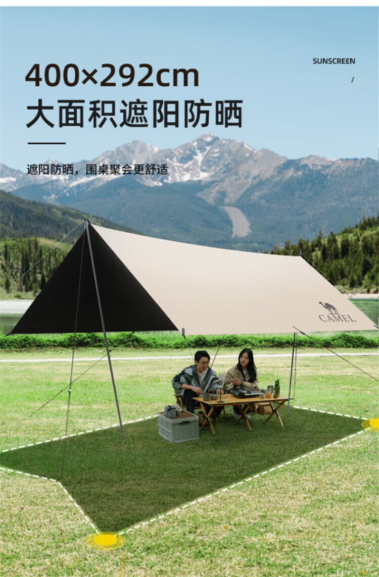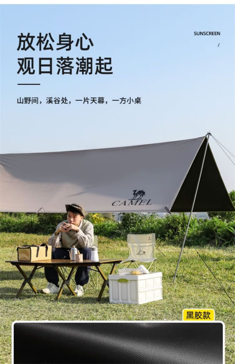 骆驼(CAMEL) 户外天幕帐篷露营野餐加厚防晒便携遮阳棚野炊公园野营防小雨棚 30㎡ 流沙金 黑胶 172BC02079B