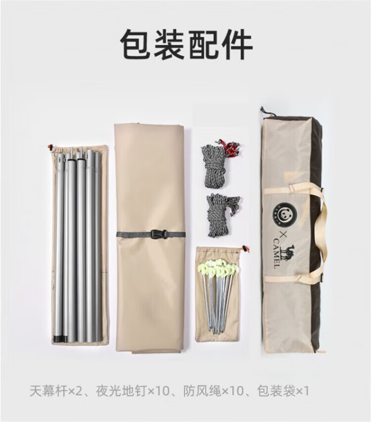 还没打开用,应该还行吧。骆驼大品牌,从冲锋衣、外套、短袖、鞋子、露营用品等,买了很多系列产品,总体质量挺好。特别是登山鞋、冲锋衣、露营车、帐篷,简单好用耐用,不错的。天幕配合帐篷用,不用老找树阴。总体挺好的,值得推荐。