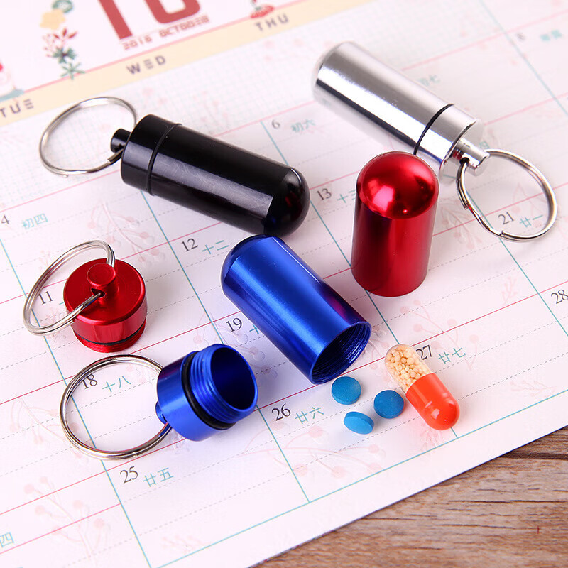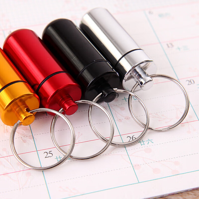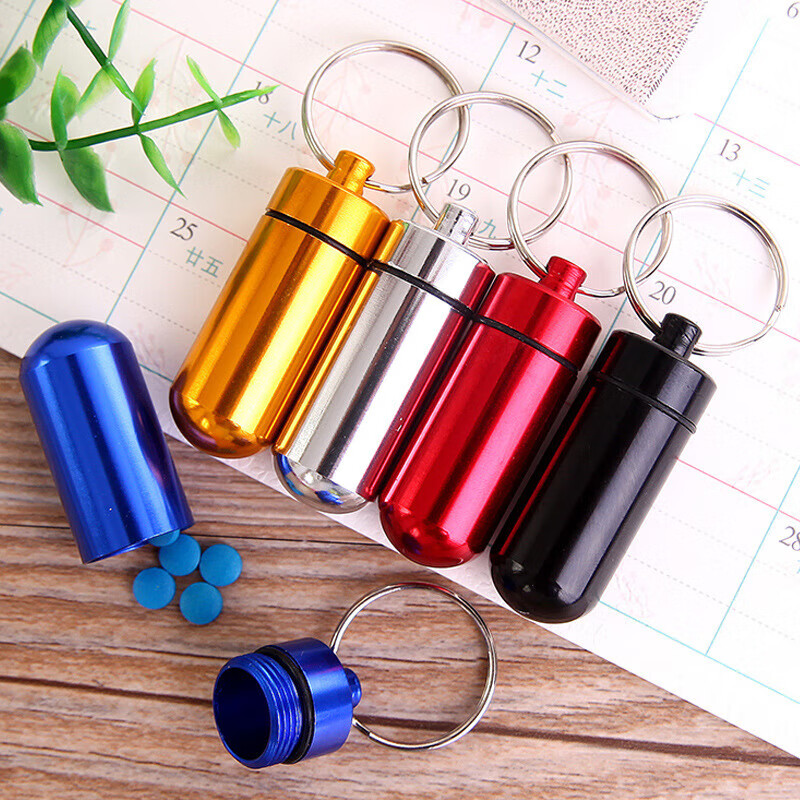 户外药瓶 铝合金钥匙扣挂瓶 迷你防水小药罐急救药丸瓶密封 颜色随机发 3号(外径17mm*不带圈48mm)圆底