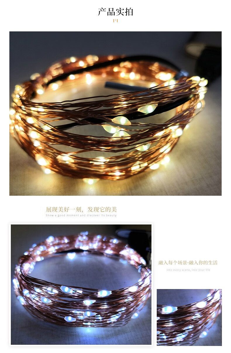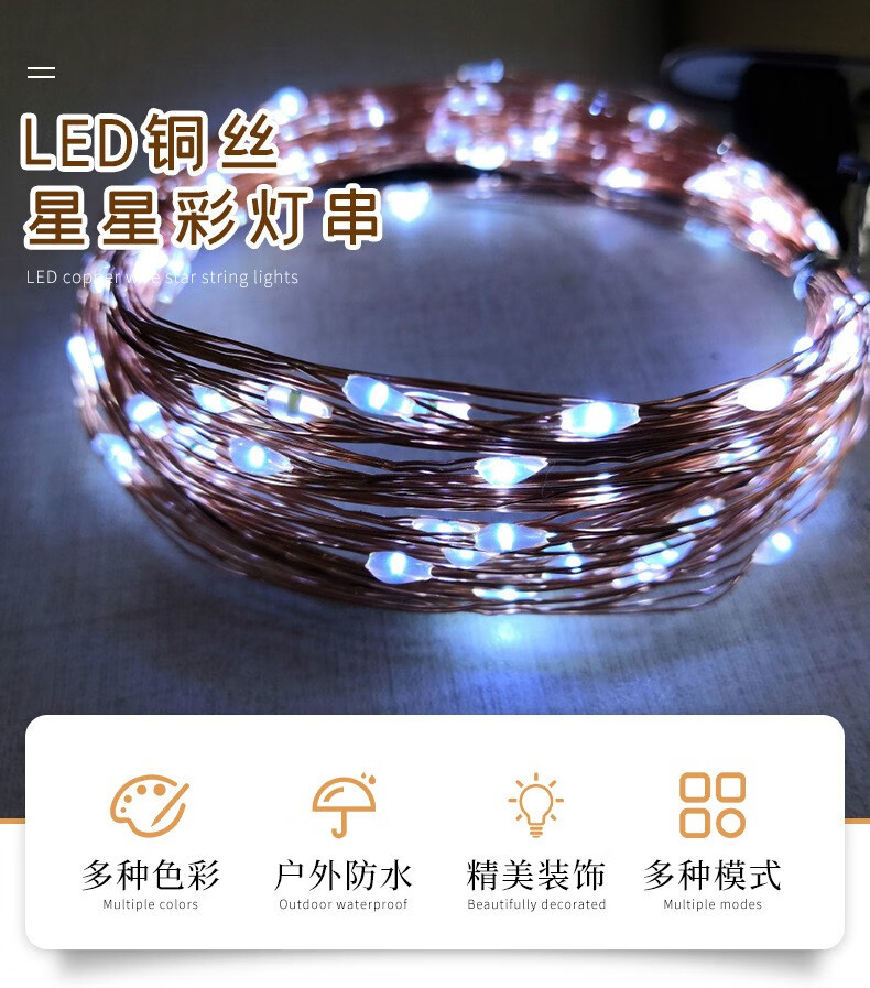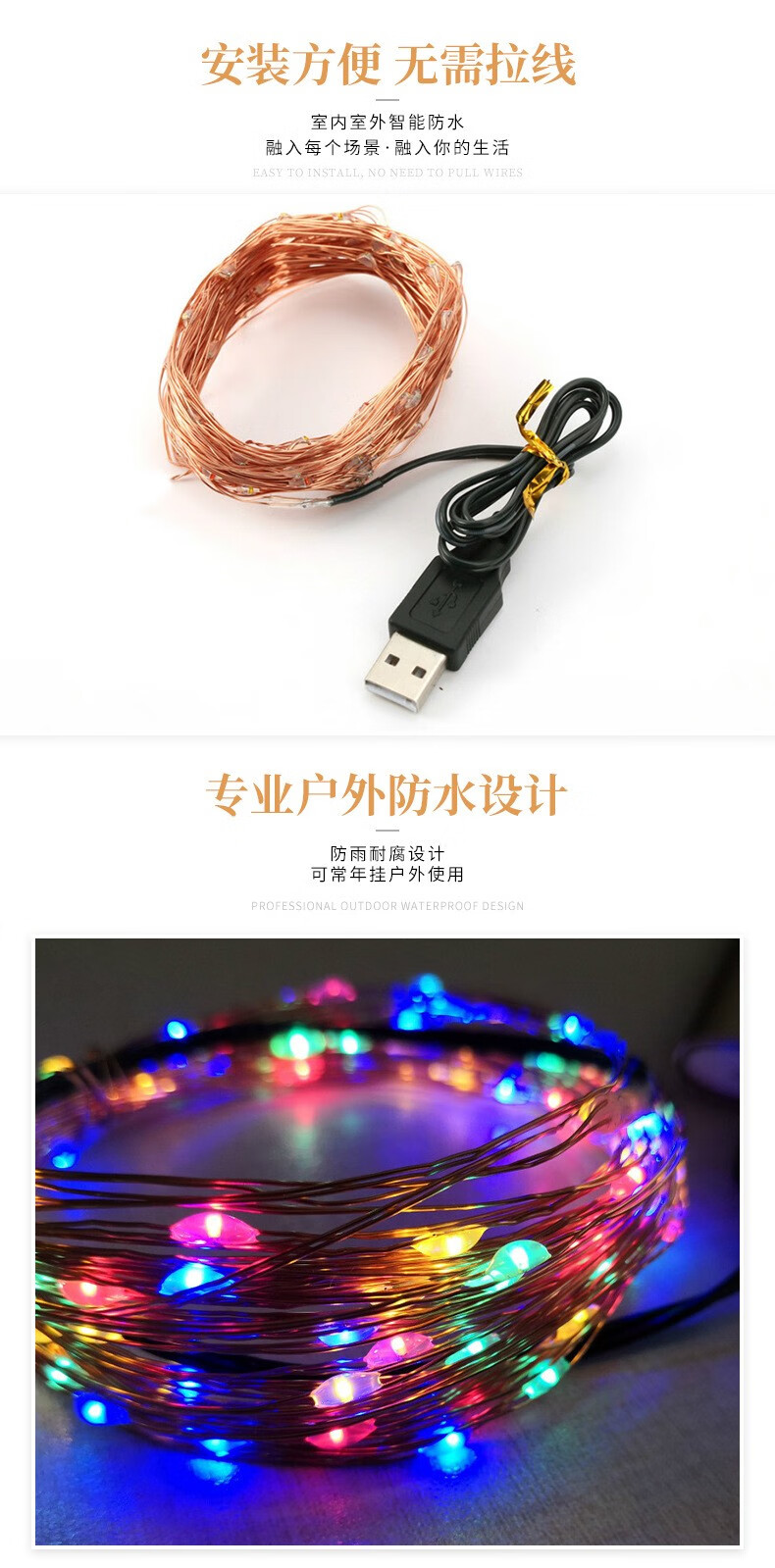 ACAGled灯串彩灯USB铜丝星星灯新年圣诞节日婚庆装饰灯铜线灯 10米100灯-彩色 USB款