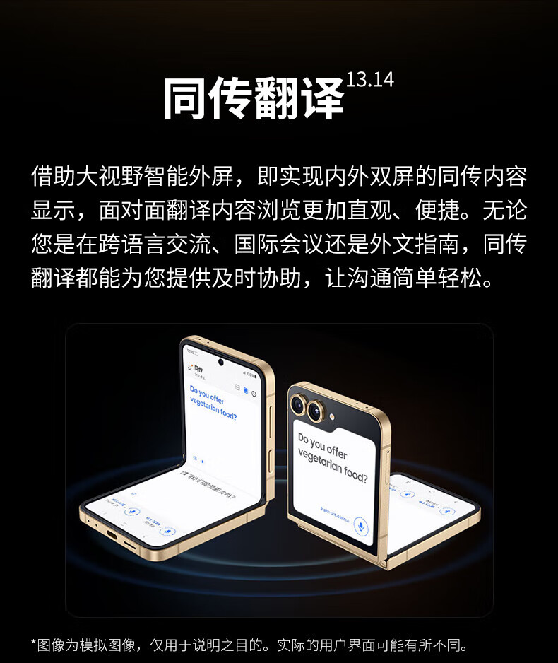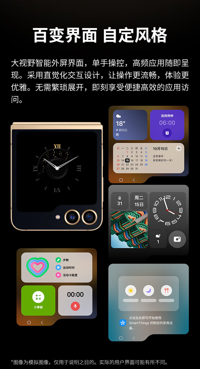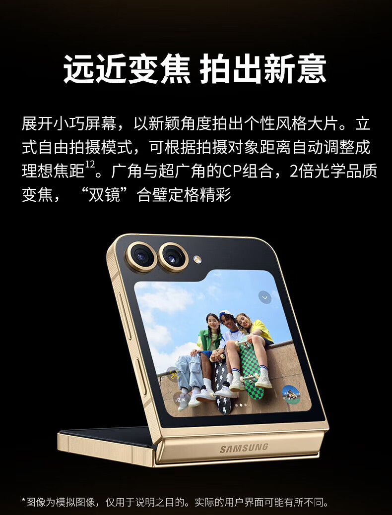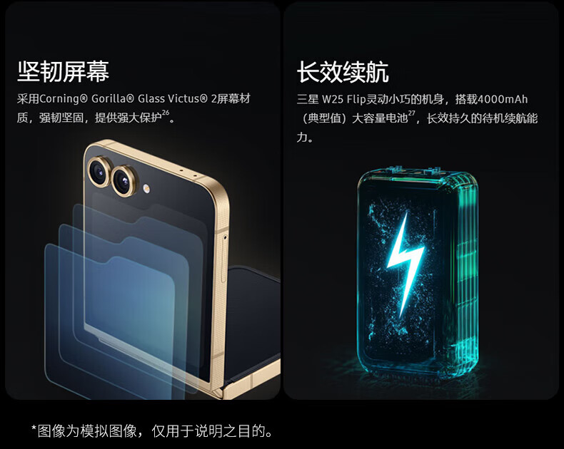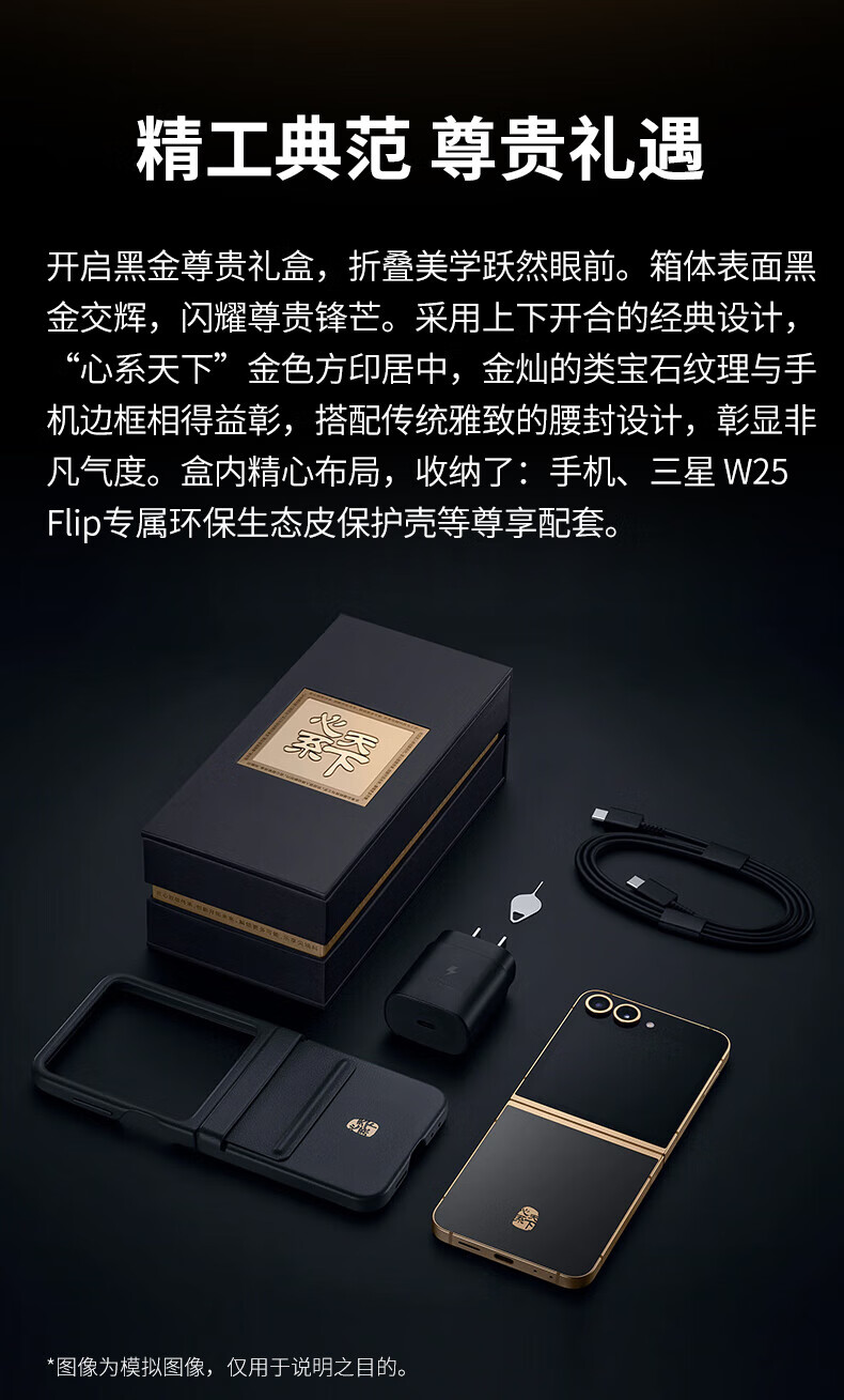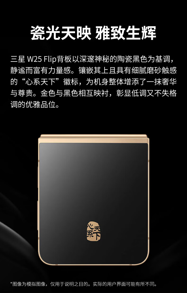 三星(SAMSUNG) W25 Flip 心系天下升级款小折叠屏手机大视野 陶瓷黑 8G+256G Flip5升级W25心系天下系统单卡