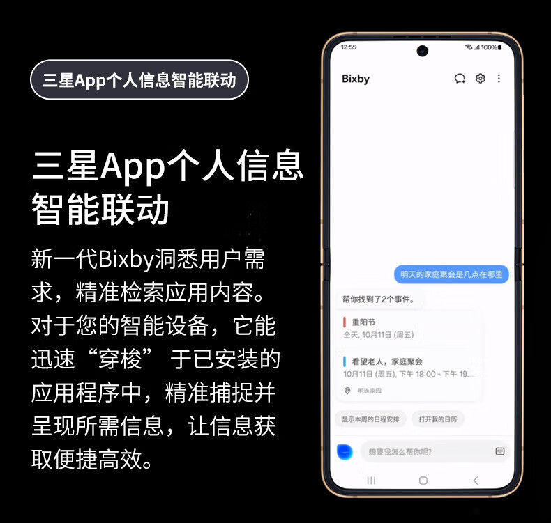 三星(SAMSUNG)W25 Flip折叠屏手机心系天下AI手机2亿像素 新一代Bixby智能手机 陶瓷黑【W25 flip】 12G+512G 官方标配 电子保卡已启用