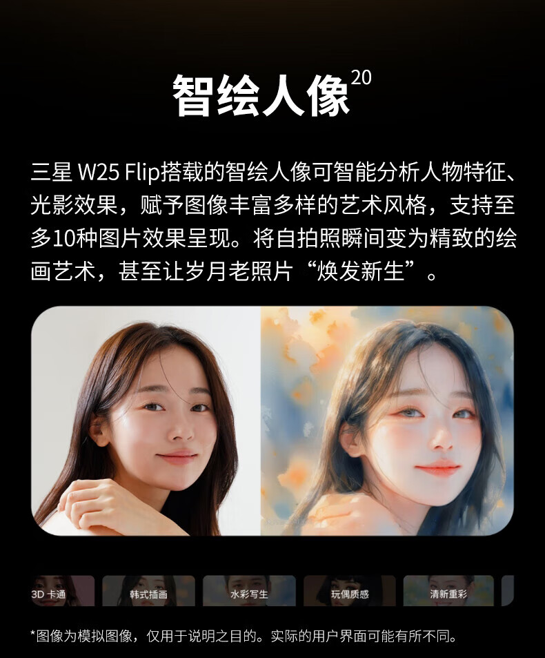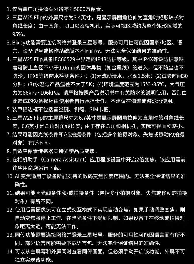 三星 W25 Flip 心系天下 AI手机 视野智能外屏 5000万像素 拍照手机 陶瓷黑 12GB+512GB