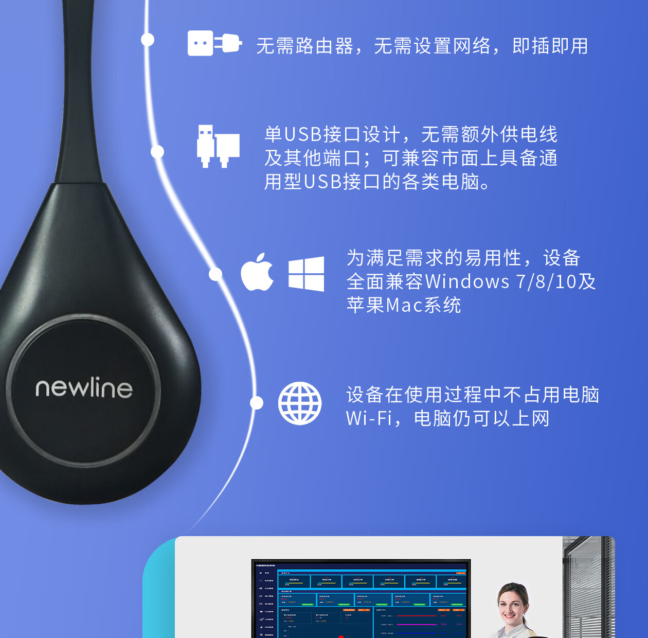 newline无线投屏传屏器小辫子 TB-W5F01【仅适配newline部分型号】【下单前请和客服确认】 TB-W5F01