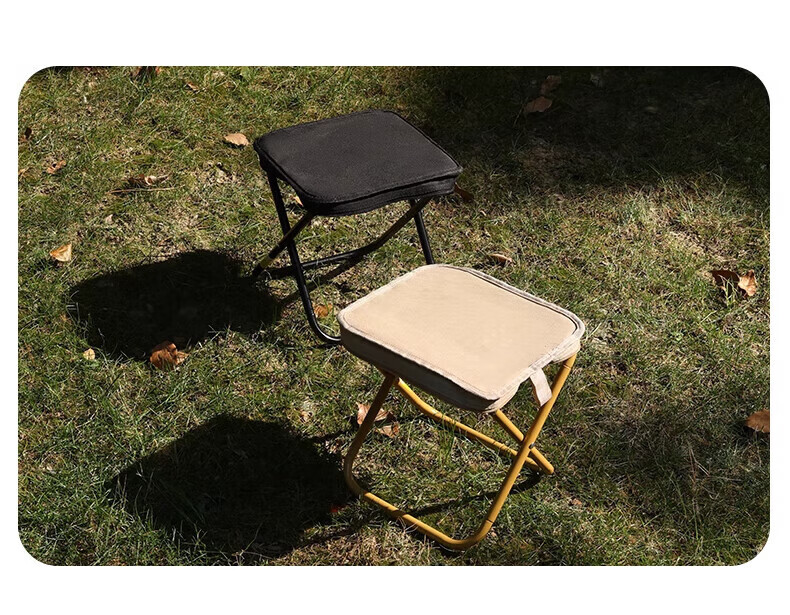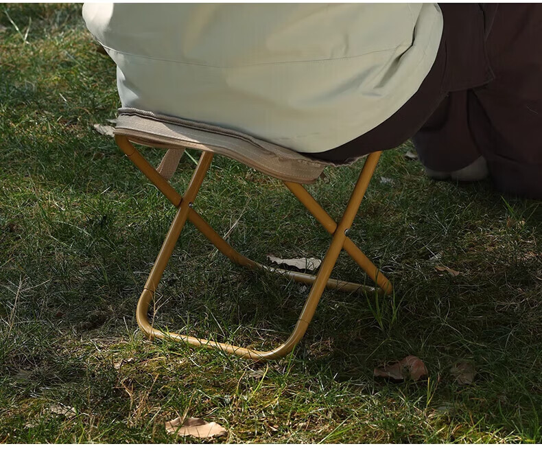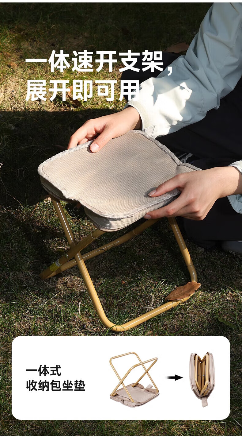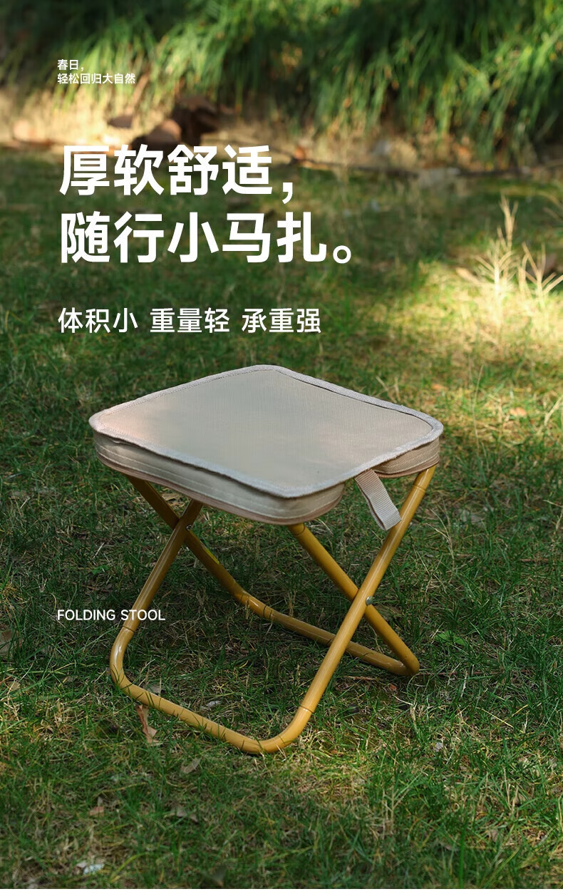 户外便携小马扎折叠小板凳手包可折叠露营排队钓鱼椅子野餐用品 米色折叠凳子 【大号】加大椅面/加粗钢管