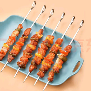 这款烧烤钢签太好用!304不锈钢材质,加粗设计不易弯,穿肉顺畅不打滑。表面光滑无毛刺,烤完清洗方便不生锈,长度刚好,户外烧烤、家用都适配!