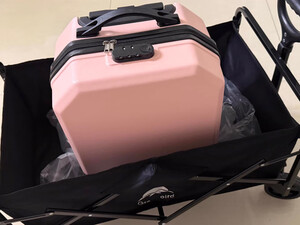 大小合适,折叠起来不占地方,特别轻巧,拉起来很稳,轮子静音,细节做的还不错哦,值得购买,这次买的这个套装很划算
