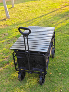 Aoran 露营推车可折叠户外手推野餐车营地拖车拉杆小拉车桌板野营车 黑色【双刹飞机轮+桌板】+椅子*2