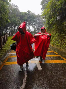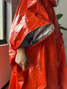 应急保温雨衣,折叠起来只有巴掌大,轻,足够大,袖子部分空间也是巨大不妨碍手臂活动,收纳起来带出去非常方便。平时出去玩备着的,应该够用了