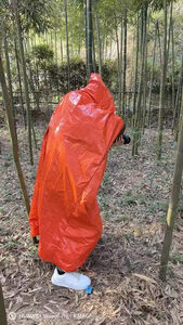 米囹户外登山应急保温毯急救毯锡纸铝箔救生毯野外求生防失温雨衣D 【应急保温雨衣】橙色3件